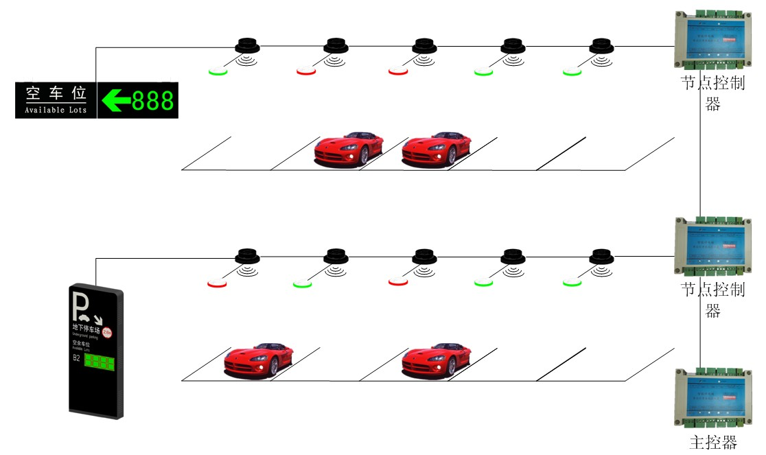为了实现停车场管理的高效率、低能耗、多收益的经营目标,实行停车场的信息化、智能化管理势在必行。为此,我们公司研发、生产了以超声波为检测手段的节能型车位引导系统。该系统创意巧妙,性能卓越,可以使泊车者及时了解到停车场内空余车位的实时信息,快速进入泊位,避免盲目驶入,提高交通道路利用率、缓解车辆拥堵、提高停车场的车位利用率,达到降低汽车能耗、减少废气排放、降低管理成本的目的。同时利用车位节能开关来控制车位灯,真正实现“车来灯亮、车走灯灭”,充分节省电能,减少费用支出等。