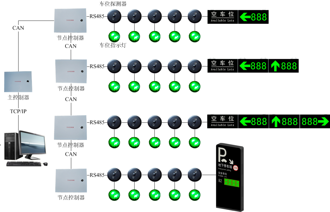 3、单个节点控制器最多支持160个车位探测器,容量大;